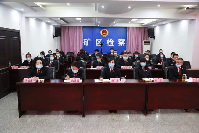 1月21日,矿区人民检察院召开检察工作会议,深入学习贯彻党的十九大及历次全会精神,认真落实中央政法工作会议精神、全国检察长(扩大)会议精神,总结2021年的检察工作,安排部署2022年检察工作。会议由分党组成员、副检察长蔡旭平主持,分党组书记、检察长金贵涛作工作报告,全院干警参加会议。