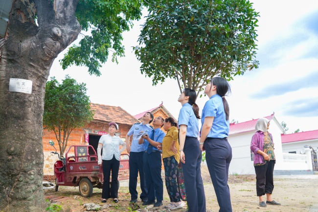 信阳市平桥区检察院公益诉讼检察官排查古树名木生存隐患。