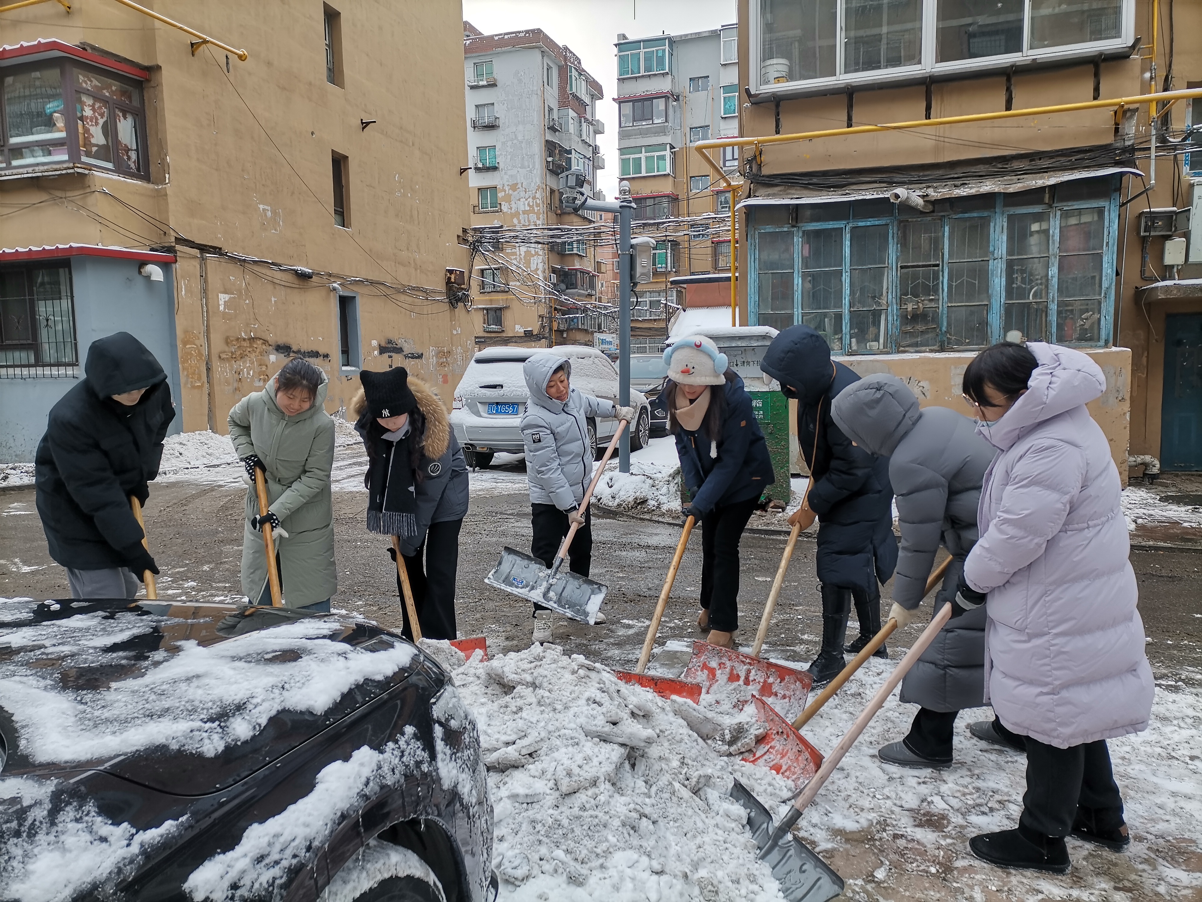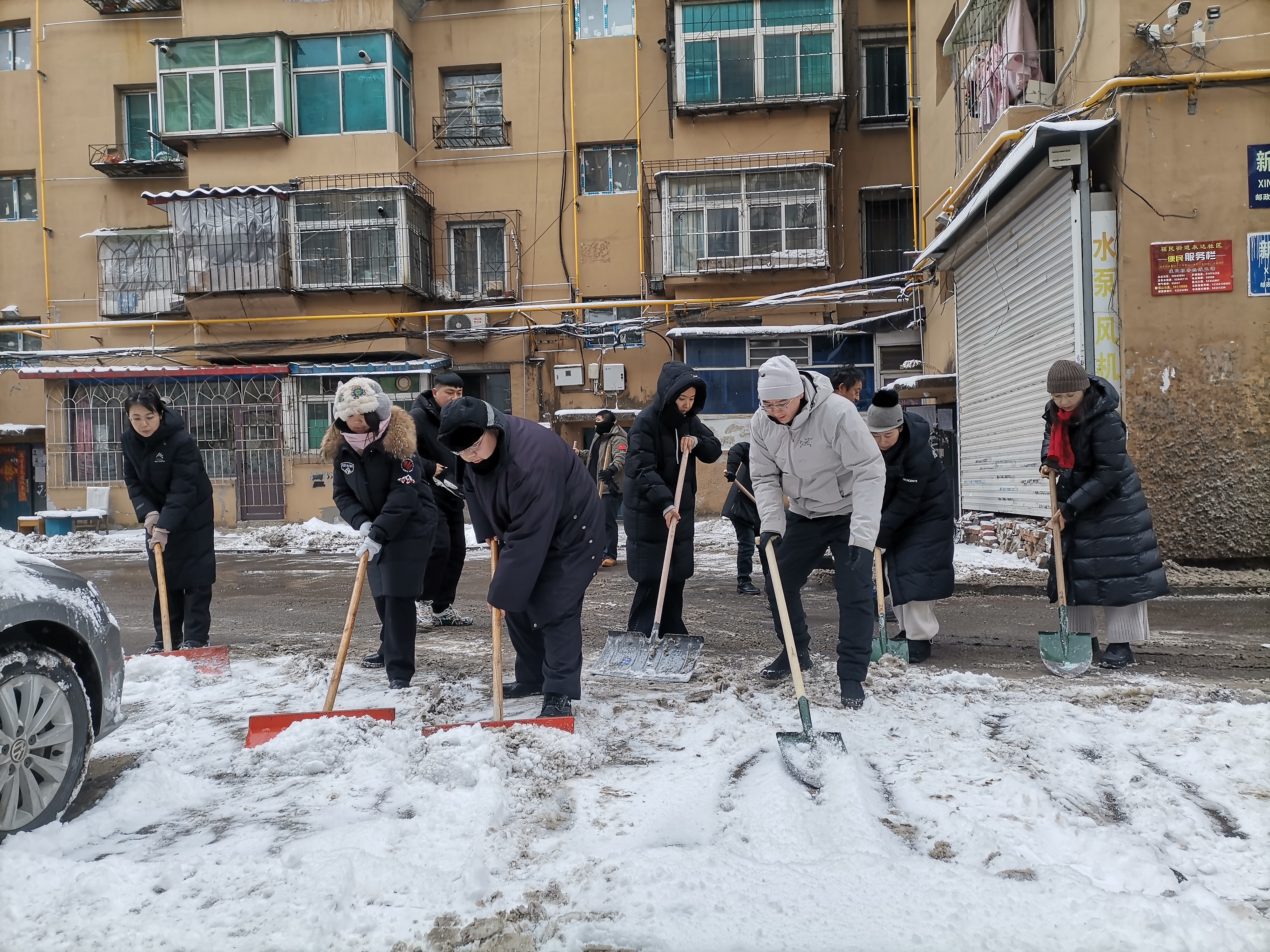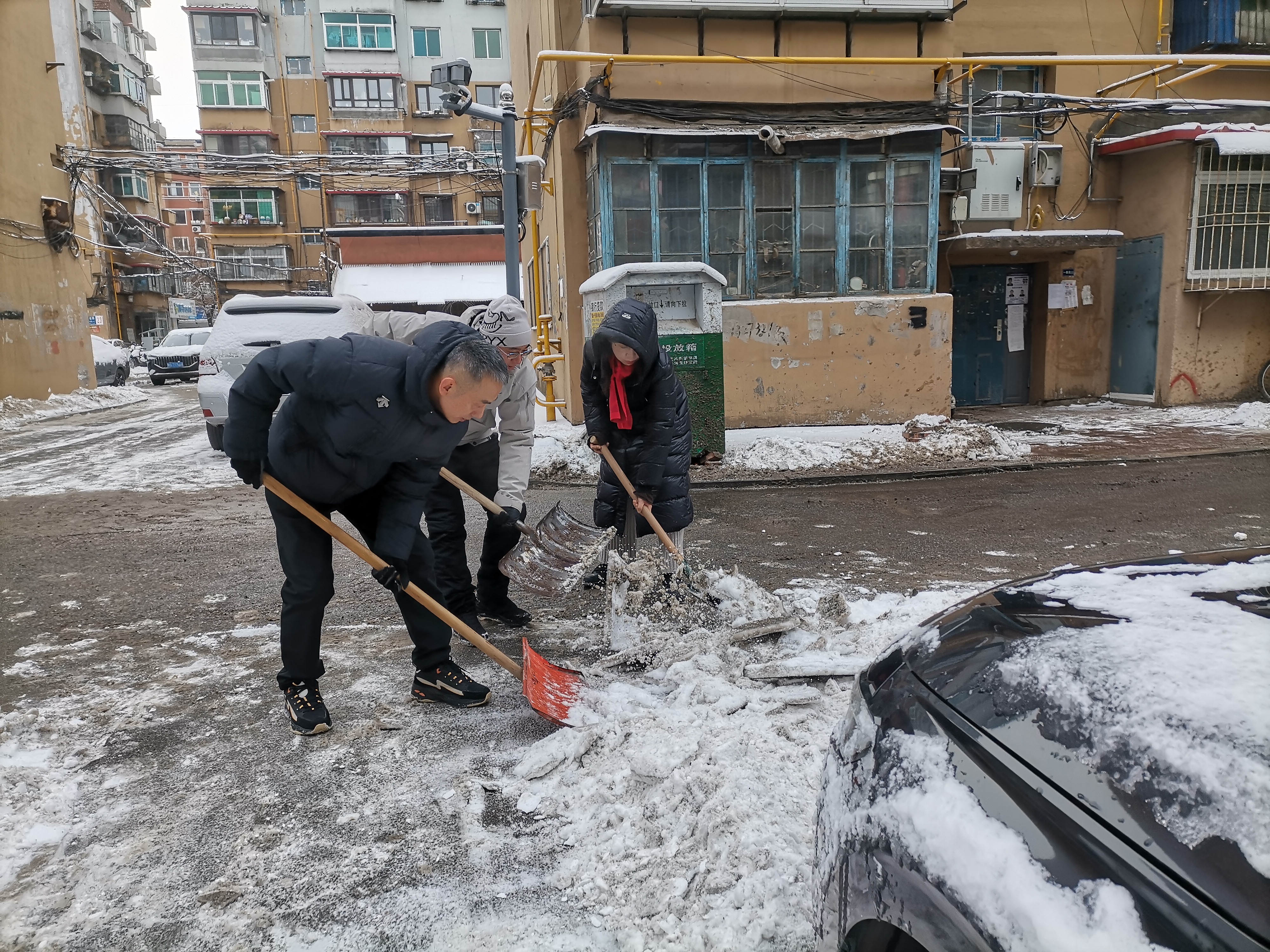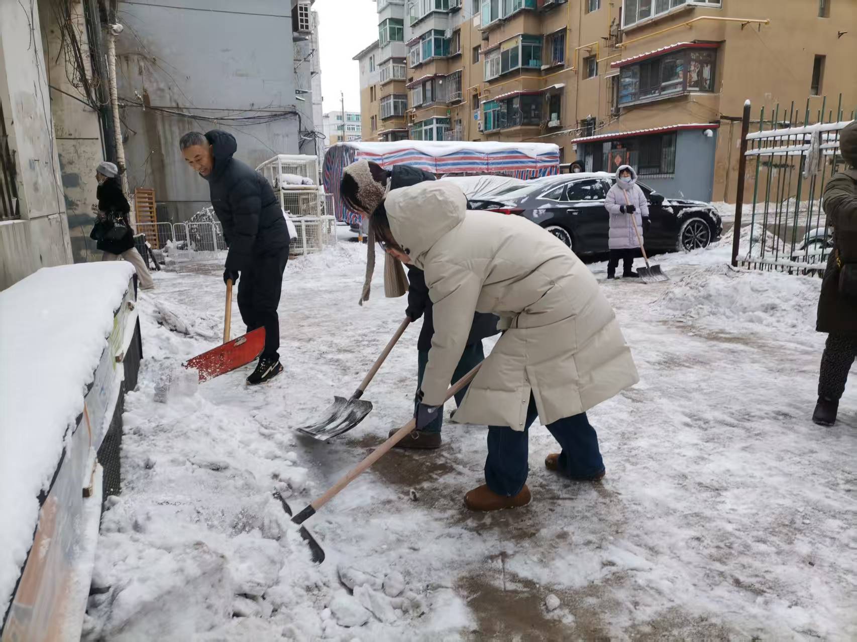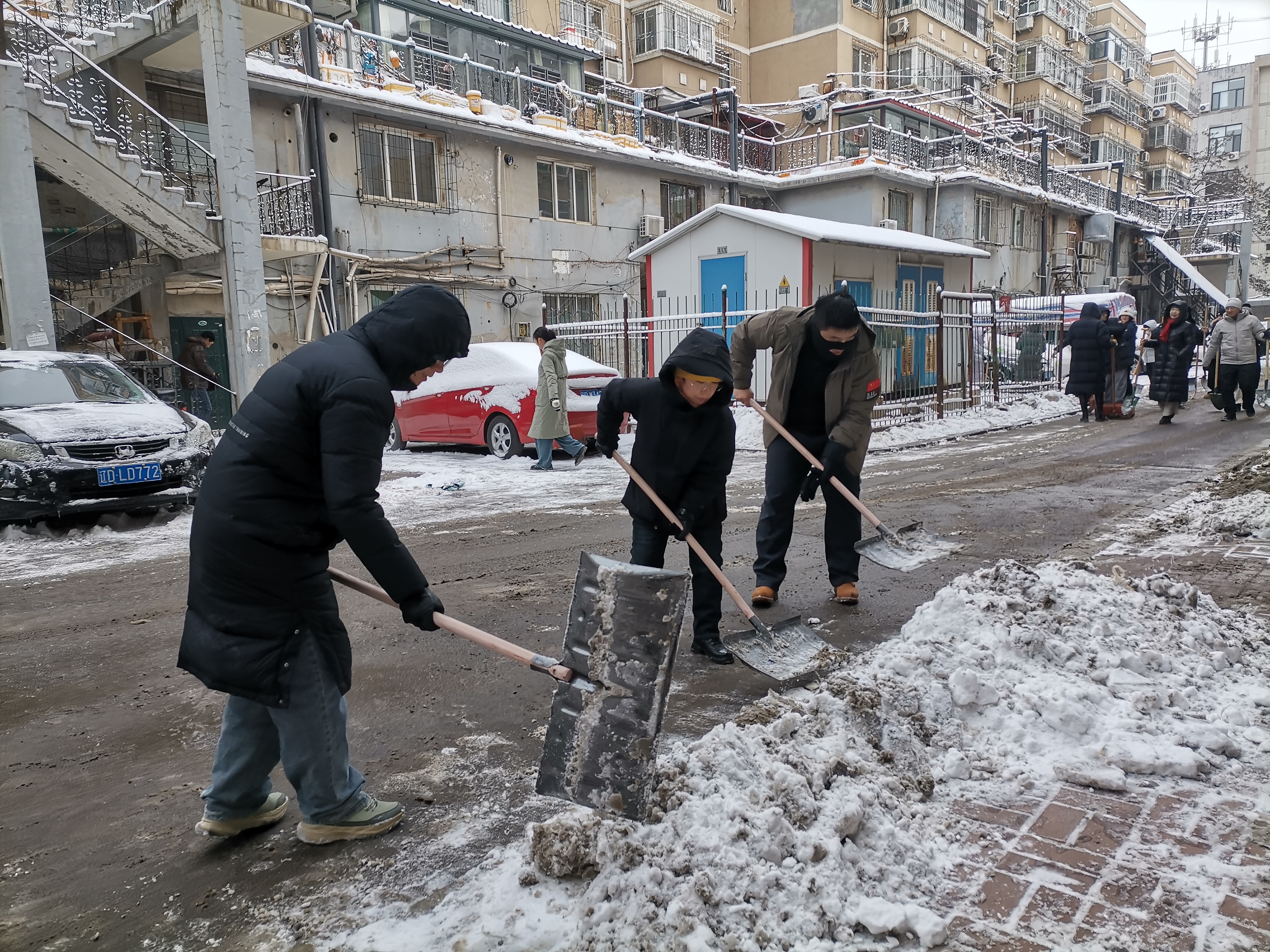 除雪现场,我院党员干警们充分发扬“团结协作、勇于担当、攻坚克难、勇毅前行”良好院风,准时到达包联的清雪区域,不畏严寒,手拿除雪工具,清雪除冰热情高涨。在除雪车无法深入的楼宇之间,党员干警们或是推动着雪铲,或是挥舞着铁锹,不放过一处积雪、不留下一块薄冰,把楼宇间的便道清理得干干净净,为居民群众开辟出一条条家门口的“暖心路”。