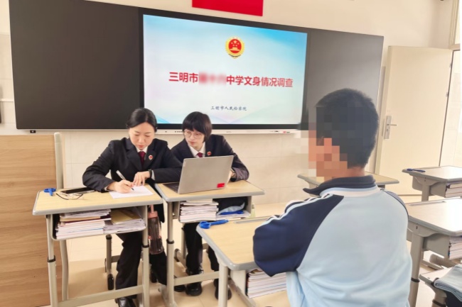 2025年1月,福建省三明市检察院检察官对办理的未成年人文身民事公益诉讼案开展调查取证。